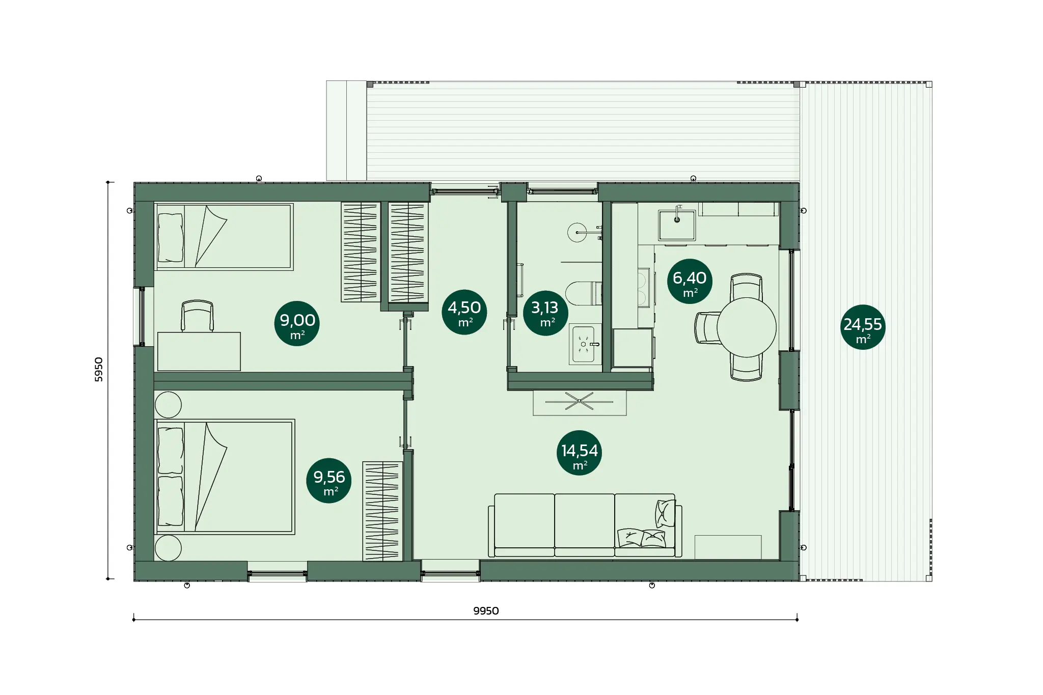 Pirmās grupas būve, apbūves laukums 59,2 m². Šis kompaktais KALMES mājas modelis nodrošina izcilu funkcionalitāti, komfortu un gudru dizainu ikdienas dzīvei. Papildus pieejamā paplašinātā terase nemanāmi savieno jūsu interjeru ar dabu — padarot to par ideālu pilsētas ligzdiņu vai ilgtspējīgu, viegli uzturamu mieru un klusumu Energoefektīva, pilnībā aprīkota un gatava dzīvošanai. Vienkārši atveriet durvis un sajūtieties kā mājās.
